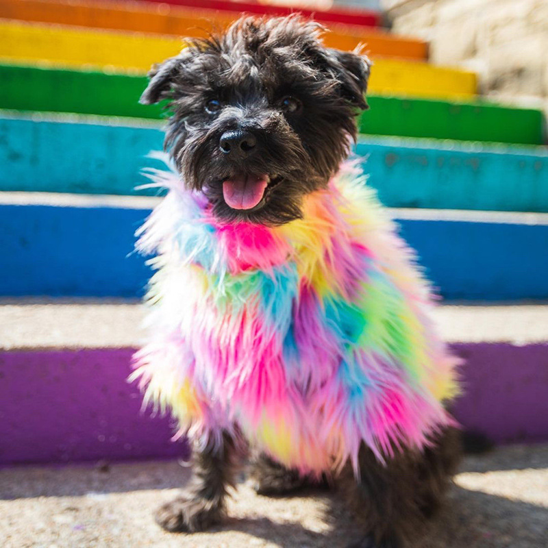 Rainbow fur pet cotton coat dog clothes for small dogs